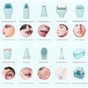 O comprimento das microagulhas do conjunto de rolos microneedle é de 0,25 mm para uso doméstico. O rolo de microagulhamento funciona com pressão suave, para você proporcionar uma experiência confortável, basta rolar e rolar tão fácil! Um passo fundamental em sua rotina de beleza para manter você com a melhor aparência. Vem com 9 cabeças de rolo e estojo de desinfecção, ideal para iniciantes, atende às suas diferentes necessidades. Nosso rolo de microagulhas é perfeito para uso doméstico, combine com seus séruns favoritos. Pode ser utilizado como um rolo facial para mulheres, também como um rolo de barba para homens, nunca foi tão acessível. - Comprimento da agulha do kit de microagulhamento: O comprimento das microagulhas no rolo é de 0,25 mm, projetado para uso doméstico, também é um ótimo começo para iniciantes - Efeitos na pele: pode dar à pele uma aparência e sensação luminosas e suaves. Ao trabalhar com pressão suave, proporciona uma experiência confortável. Rolar é descrito como sendo muito fácil, e é considerado um passo fundamental na rotina de beleza para ajudar a manter uma boa aparência - Componentes incluídos: Vem com 9 cabeças de rolo e um estojo de desinfecção. Isso o torna ideal para iniciantes, pois pode atender a diferentes necessidades - Uso e aplicação: O rolo de microagulhamento é perfeito para uso doméstico e pode ser combinado com soros favoritos. Pode ser utilizado como rolo facial para mulheres e também como rolo de barba para homens. É adequado para homens, mulheres e todos os tipos de pele - Escolha de presente ideal: o presente perfeito para homens ou mulheres, se você encontrar algum problema, por favor me avise e resolveremos prontamente para garantir sua satisfação como um cliente valioso