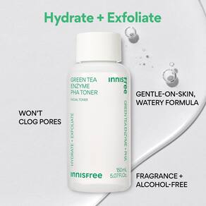 Enzima derivada do chá verde (toner): ajuda a esfoliar suavemente a pele - Óleo de semente de chá verde + squaulane + ceramida (creme): Hidrata e ajuda a fortalecer a barreira de hidratação da pele