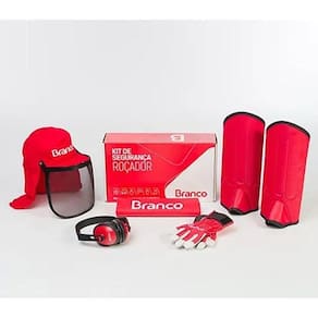 Ca: 17135confeccionado em tecido 100% algodão brim, aba de 7,5 de comprimento e protetor de nuca de 20cm de comprimento. Atende requisitos nr-06. Epi super leve e de modelagem confortável. Alta performance de trabalho e maior produtividade. Protetor facial que não amassa e não distorce a visão. Recomendado para atividades de roçada, colheitas em geral e podas de arbustos. Proteção de raios uv e de partículas volantes. Protetor auricular 14 dbca: 26023equipamento de proteção individual epi tipo protetor auricular desenvolvido com espuma preta de absorção acolchoada e revestida de tecido siliconado. Constituído com duas conchas de abafadores em plástico em forma a cor vermelho, montados simetricamente nas extremidades a uma haste-suporte ajustável de plástico rígido, e na cor preta, em forma de arco, adaptável a diferentes formatos de cabeça humana, permitindo que cada abafador se aplique sob pressão aos respectivos auriculares. Proteção dos ouvidos do usuário contra risco de ruído. Indicado para ruídos até 99db. Luva de couro e nylon especialca: 25636equipamento de proteção individual tipo luva para proteção das mãos nas atividades florestais ou industriais. Desenvolvida em tamanho 9. Palma fabricada em couro vaqueta 10/12 linhas na cor natural, com reforço em costura entre os dedos e externo central com dupla costura, cobrindo as pontas dos dedos em ambas as mãos até o punho. Dorso fabricado com tecido poliéster espumado na cor vermelha com tecnologia climatec com 6 cm de comprimento, com fechamento em tiras aderentes para melhor empunhadura e com elástico de 5cm de comprimento no dorso costurado horizontalmente para ajustes de vestimenta. Designer arrojado com maior segurança, aderência, maleabilidade, flexibilidade e durabilidade. Perneira de proteção vermelha fechadaca: 30955vestimento de segurança tipo perneira, confeccionada em couro sintético de 4mm de espessura, forrada internamente, em peça única para sobrepor sobre vestimenta - sem ajuste/regulagem de tamanho , fechamento por costura de solda eletrônica, contendo três lâminas de pvc na parte frontal da perneira, de 16 cm de comprimento e 0,6 mm de espessura. Proteção de couro sintético no metatarso. Tamanho: únicopeso: 650gcor: vermelhamedidas: 40 cm de comprimento frontal20 cm de comprimento posterior 09 cm de comprimento sobre o metatarso0,08 cm de espessura40 cm de diâmetroproteção contra picadas de animais peçonhentos, materiais ou objetos cortantes. Avental roçador pvc vermelho forradoca: 43913avental confeccionado em material pvc laminado na cor vermelha com forro. Impermeável. Com ajustes por meio de amarração. Peso: 85gtamanho: 120 x 70cmproteção do usuário contra riscos de origem química. Serviços de limpeza geral. Marca: branco