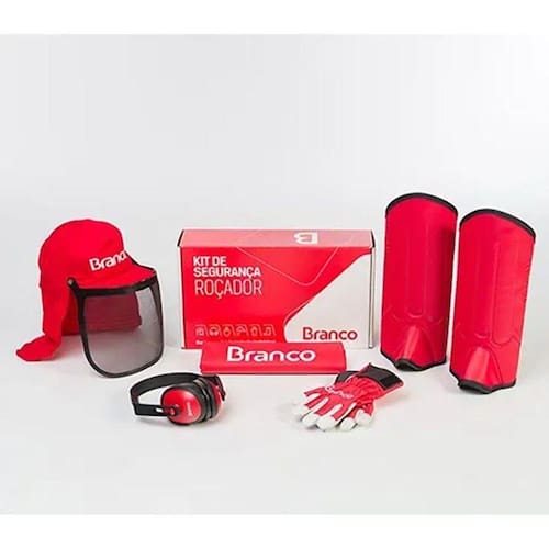 CA: 17135Confeccionado em tecido 100% algodão brim, aba de 7,5 de comprimento e protetor de nuca de 20cm de comprimento. Atende requisitos NR-06.EPI super leve e de modelagem confortável.Alta performance de trabalho e maior produtividade. Protetor facial que não amassa e não distorce a visão. Recomendado para atividades de roçada, colheitas em geral e podas de arbustos. Proteção de raios UV e de partículas volantes.Protetor auricular 14 DBCA: 26023Equipamento de proteção individual EPI tipo protetor auricular desenvolvido com espuma preta de absorção acolchoada e revestida de tecido siliconado. Constituído com duas conchas de abafadores em plástico em forma a cor vermelho, montados simetricamente nas extremidades a uma haste-suporte ajustável de plástico rígido, e na cor preta, em forma de arco, adaptável a diferentes formatos de cabeça humana, permitindo que cada abafador se aplique sob pressão aos respectivos auriculares.Proteção dos ouvidos do usuário contra risco de ruído. Indicado para ruídos até 99dB.Luva de Couro e Nylon EspecialCA: 25636Equipamento de proteção individual tipo luva para proteção das mãos nas atividades florestais ou industriais. Desenvolvida em tamanho 9. Palma fabricada em couro vaqueta 10/12 linhas na cor natural, com reforço em costura entre os dedos e externo central com dupla costura, cobrindo as pontas dos dedos em ambas as mãos até o punho. Dorso fabricado com tecido poliéster espumado na cor vermelha com tecnologia climatec com 6 cm de comprimento, com fechamento em tiras aderentes para melhor empunhadura e com elástico de 5cm de comprimento no dorso costurado horizontalmente para ajustes de vestimenta.Designer arrojado com maior segurança, aderência, maleabilidade, flexibilidade e durabilidade.Perneira de Proteção Vermelha FechadaCA: 30955Vestimento de segurança tipo perneira, confeccionada em material sintético de 4mm de espessura, forrada internamente, em peça única para sobrepor sobre vestimenta - sem ajuste/regulagem de tamanho , fechamento por costura de solda eletrônica, contendo três lâminas de PVC na parte frontal da perneira, de 16 cm de comprimento e 0,6 mm de espessura. Proteção de material sintético no metatarso.Tamanho: únicoPeso: 650gCor: VermelhaMedidas: 40 cm de comprimento frontal20 cm de comprimento posterior 09 cm de comprimento sobre o metatarso0,08 cm de espessura40 cm de diâmetroProteção contra picadas de animais peçonhentos, materiais ou objetos cortantes.Avental Roçador PVC Vermelho ForradoCA: 43913Avental confeccionado em material PVC laminado na cor vermelha com forro. Impermeável. Com ajustes por meio de amarração.Peso: 85gTamanho: 120 x 70cmProteção do usuário contra riscos de origem química.Serviços de limpeza geral .Marca: Branco