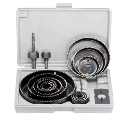 Kit de Serra Copo para Madeira com 16 Peças Gorillaz Import Conjunto de serras copo para madeira ideal para confecção e manutenção de móveis, fazer furos para passar cabos e outras aplicações. O kit de serra copo contém:12 Serras Copo nas medidas: 19 mm - 22 mm - 29 mm - 32 mm - 38 mm - 44 mm - 51 mm - 64 mm - 76 mm - 89 mm - 102 mm - 127 mm2 Mandris H.C.S. Com Broca Piloco 6 mm1 Encaixe Marca: Não Informado