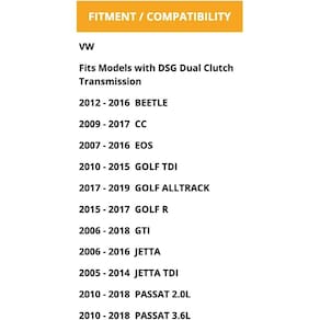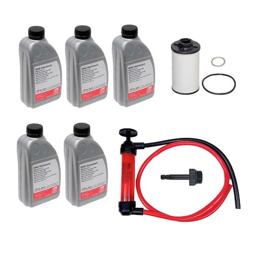 Compatível com modelos com transmissão de 6 velocidades de embreagem dupla DSG BEETLE 2012 - 2016 CC 2009 - 2017 EOS 2007 - 2016 2010 - 2015 GOLF TDI 2017 - 2019 GOLF ALLTRACK 2015 - 2017 GOLF R GTI 2006 - 2018 JETTA 2006 - 2016 JETTA TDI 2005 - 2014 2010 - 2018 PASSAT 2.0L 2010 - 2018 PASSAT 3.6L - Kit de serviço DSG + bomba - 1 x Filtro DSG de transmissão de embreagem dupla automática - 1 x Vedação de caixa de filtro DSG - 5 x Fluido DSG (1L) - FEBI ALEMANHA - 1 x vedação de arruela de drenagem - 1 x adaptador de enchimento/enchimento - 1 bomba manual de transferência de fluido