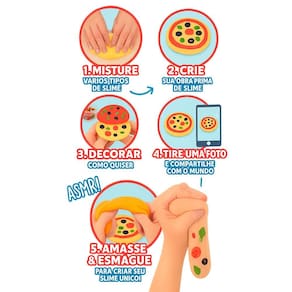 Crie a pizza dos seus sonhos com o Slimy DIY Street Food Crush - Pizza! Misture, modele e decore suas próprias pizzas de slime, criando obras realistas e divertidas Depois de modelar, esmague a pizza para uma sensação cremosa e irresistível Ideal para estimular a criatividade e as habilidades motoras, proporcionando uma experiência sensorial única para as crianças