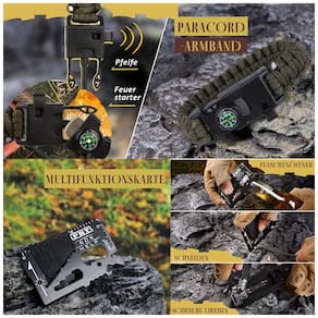 Presentes para o Dia dos Pais para o Pai dos Homens. Um belo presente para homens ou meninos interessados em aventura ou família que está se preparando para acampar ou caminhar ou escoteiros. Também um presente para escoteiros Boyfriend Teen. É um kit multiferramentas, que também é barato o suficiente para comprar vários para o seu carro, mochila, mesa de escritório, etc. O kit contém lanterna de 3 modos, iniciador Handy Fire, serra de arame, cartão de sabre multifuncional, pulseira Paracord, clipe de garrafa de água, cobertor de emergência. Com mais de 1000 usos combinados, este kit habilmente montado é o kit de sobrevivência mais inteligente e compacto de seu tipo Marca: Não Informado