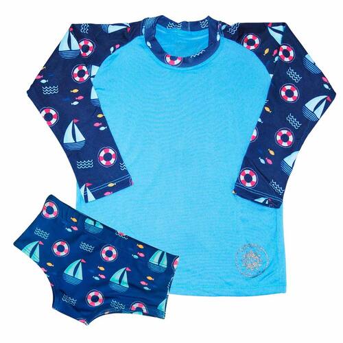 Kit De Sunga Marinheiro Infantil Blusa Proteção Solar Uv50+
