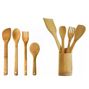 - Kit Utensílios de Bambu com 5 peças - Feito de bambu natural. - Ideal para cozinha, bares e restaurantes. Material: Bambu