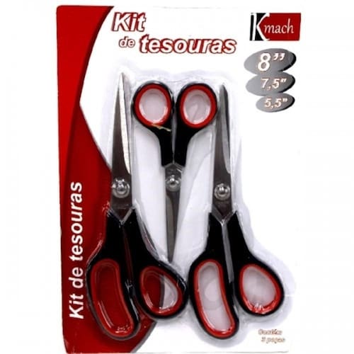 As tesouras dão liberdade a sua criatividade. Com lâminas feitas em aço ideais para corte de tecido, papel, feltro, tnt, fitas, borracha, plástico e tudo mais que sua imaginação precisar. O conjunto de tesouras vem com 3 tamanhos diferentes que permitem diferentes utilizações como trabalhos que exigem mais delicadeza assim como trabalhos mais pesados.