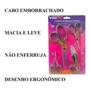 Kit de tesouras corte e costura 4 peças westpress Conjunto com 4 tesouras, indicada para cortar tecidos. Desenvolvida com alto padrão de qualidade, permitindo excelente desempenho, precisão e maciez no corte.