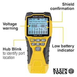 KLEIN TOOLS Kit testador de cabos VDV501-851 com Scout Pro 3 para cabos Ethernet/dados, coaxiais/vídeo e telefone, 5 controles remotos localizadores - Teste de cabo versátil: o testador de cabos testa cabos terminados por voz (RJ11/12), dados (RJ45) e vídeo (conector F coaxial), fornecendo resultados claros para testes abrangentes - MEDIÇÃO DO COMPRIMENTO DO CABO ESTENDIDO: Meça o comprimento do cabo até 610 m, permitindo a determinação precisa do comprimento do cabo - Detecção abrangente de falhas: teste para falhas abertas, curtas, falhas ou pares divididos, garantindo detecção e identificação completas de falhas - Visor LCD retroiluminado: a tela LCD retroiluminada exibe o comprimento do cabo, mapa de fios, ID do cabo e resultados de teste, garantindo fácil legibilidade em várias condições de iluminação - TRACAMENTO DE CABO EFICIENTE: cabos de rastreamento, pares de fios e fios condutores individuais usando o gerador de tons de vários estilos (requer sonda analógica Cat. Não. VDV500-123, vendido separadamente), simplificando as tarefas de rastreamento de cabos - Modo de piscar do HUB: o modo de piscar do hub permite a identificação de locais de porta em um hub ou switch, facilitando o gerenciamento de rede eficiente - Mapeamento de vários cabos: os controles remotos de localização LanMap e CoaxMap (5 cada) permitem mapeamento e identificação de vários cabos em uma única etapa, melhorando o gerenciamento e a organização do cabo