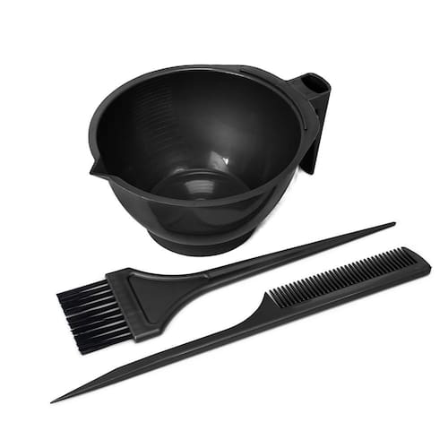 Contém: 1 tigela graduada para tintura; 1 pincel para a aplicação, 1 pente fino.