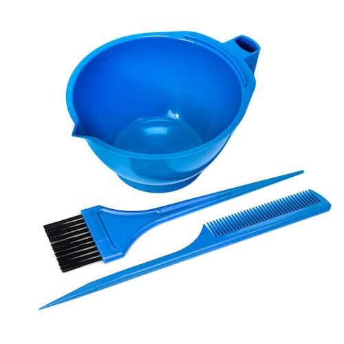 Contém: 1 tigela graduada para tintura; 1 pincel para a aplicação, 1 pente fino.