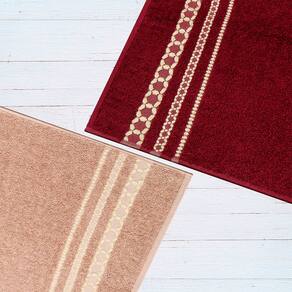 Contém: 02 Toalhas de Banho 1,40 m x 70 cm (CxL) 02 Toalhas de Rosto 75 cm x 50 cm (CxL) 01 Toalha de Piso 70x50cm (CxL)