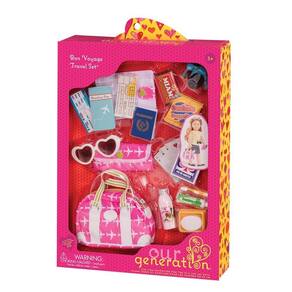 Acessórios de viagem para bonecas de 46cm Para aventuras divertidas desde o embarque até o passeio pela cidade com esse lindo conjunto de viagem Our Generation Suas bonecas favoritas se transformarão em sofisticadas viajantes com direito a lanchinhos, baralho de cartas, passaporte, carteira, cartões de embarque, câmera, óculos de sol, produtos de higiene pessoal e uma mala. Cada peça é perfeitamente dimensionada para as bonecas Our Generation. Acessórios faz de conta. Boneca vendida separadamente. Our Generation não se trata apenas de uma boneca, um lindo conjunto de roupas ou mesmo um kit de acessórios fantásticos. É sobre incentivar crianças de todos os estilos e gostos a criar suas próprias histórias, desenvolvendo um universo ilimitado de brincadeiras com bonecas e acessórios. Sua embalagem é feita de material reciclado, especialmente desenvolvida para uma geração mais ecológica que não aceitaria nada menos. Essa é a nossa história, e essa é a nossa turma