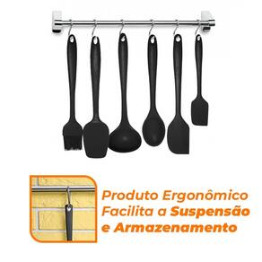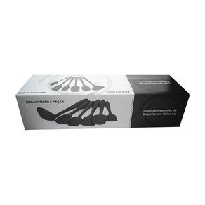 Jogo de utensílios 6 peças em silicone preto - casambiente o kit de 6 utensílios pretos da casambiente foi feito para você que gosta de cozinhar com qualidade e sem danificar suas panelas e frigideiras, com toda certeza, produzido em silicone, resistente a 230c, livre de odores e seguro para lava louças os utensílios contam com um ótimo ângulo para raspagem, uma cor intensamente viva, uma alça ergonômica e um orifício para facilitar a suspensão e armazenamento do produtos.