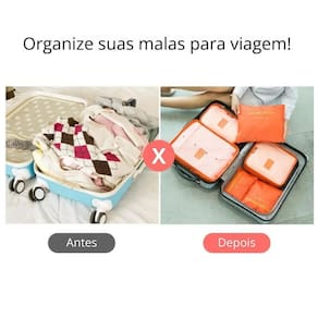 Contém: 03 - bolsa organizadora tipo cubo tamanhos p, m, g , rosa 03 - necessaire tamanhos p, m e g , rosa Organize sua mala de forma prática e eficiente com esse kit de organizadores de viagem. Perfeito para quem busca otimizar espaço, manter tudo no lugar e ter mais praticidade na hora de viajar. O kit conta com 3 bolsas tipo cubo, com telas respiráveis, alça e zíper, em 3 tamanhos diferentes. A bolsa tamanho g é ideal para calças, casacos ou outras roupas de maior volume, a de tamanho m é perfeita para camisetas, vestidos ou blusas e a tamanho p é ideal para roupas íntimas, meias ou acessórios. Também está incluso no kit 3 necessaires com zíper, em 3 tamanhos diferentes. A tamanho g, recomendada para produtos de higiene pessoal, cosméticos maiores ou eletrônicos, a tamanho m é ótima para maquiagens, cabos, carregadores ou pequenos frascos, e a tamanho p é ideal para itens pequenos como remédios, joias ou documentos. As bolsas são fabricadas em tecidos respiráveis e resistentes, além de contarem com telas que permitem visualizar o conteúdo sem precisar abrir. O kit é leve e dobrável, facilitando o armazenamento quando não estiver em uso. Um kit perfeito para facilitar a localização rápida de objetos durante a viagem. Também pode ser no dia a dia, em mochilas ou bolsas de academia. Características principais: - rosa; - 6 peças; - 3 bolsas organizadoras com tela tam. P, m e g ; - 3 necessaires com zíper tam. P, m e g ; - material resistente e leve; - leve e dobrável, ideal para transporte e armazenamento; - tela que permite ventilação e visualização fácil do conteúdo; - ideal para roupas, calçados, acessórios, produtos de higiene, eletrônicos, etc; - alças auxiliares nas bolsas para fácil manuseio; - perfeito para viagens, mochilas ou bolsas de academia; - ajuda a comprimir as roupas, aproveitando melhor cada centímetro da mala; - permite manter roupas limpas e sujas separadas; - compatível com malas de bordo, médias e grandes. Boas compras ;