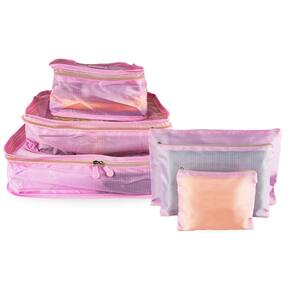 Contém: 03 - bolsa organizadora tipo cubo tamanhos p, m, g , rosa 03 - necessaire tamanhos p, m e g , rosa Organize sua mala de forma prática e eficiente com esse kit de organizadores de viagem. Perfeito para quem busca otimizar espaço, manter tudo no lugar e ter mais praticidade na hora de viajar. O kit conta com 3 bolsas tipo cubo, com telas respiráveis, alça e zíper, em 3 tamanhos diferentes. A bolsa tamanho g é ideal para calças, casacos ou outras roupas de maior volume, a de tamanho m é perfeita para camisetas, vestidos ou blusas e a tamanho p é ideal para roupas íntimas, meias ou acessórios. Também está incluso no kit 3 necessaires com zíper, em 3 tamanhos diferentes. A tamanho g, recomendada para produtos de higiene pessoal, cosméticos maiores ou eletrônicos, a tamanho m é ótima para maquiagens, cabos, carregadores ou pequenos frascos, e a tamanho p é ideal para itens pequenos como remédios, joias ou documentos. As bolsas são fabricadas em tecidos respiráveis e resistentes, além de contarem com telas que permitem visualizar o conteúdo sem precisar abrir. O kit é leve e dobrável, facilitando o armazenamento quando não estiver em uso. Um kit perfeito para facilitar a localização rápida de objetos durante a viagem. Também pode ser no dia a dia, em mochilas ou bolsas de academia. Características principais: - rosa; - 6 peças; - 3 bolsas organizadoras com tela tam. P, m e g ; - 3 necessaires com zíper tam. P, m e g ; - material resistente e leve; - leve e dobrável, ideal para transporte e armazenamento; - tela que permite ventilação e visualização fácil do conteúdo; - ideal para roupas, calçados, acessórios, produtos de higiene, eletrônicos, etc; - alças auxiliares nas bolsas para fácil manuseio; - perfeito para viagens, mochilas ou bolsas de academia; - ajuda a comprimir as roupas, aproveitando melhor cada centímetro da mala; - permite manter roupas limpas e sujas separadas; - compatível com malas de bordo, médias e grandes. Boas compras ;