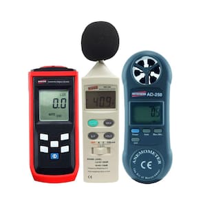 KIT DECIBELÍMETRO MOD. DEC-460, FAIXA DE MEDIÇÃO DE 35 A 130DB COM CALIBRADOR INTERNO + LUXÍMETRO DIGITAL MOD. LD-400 COM MEMÓRIA DE ARMAZENAMENTO DE ATÉ 50 LEITURAS + ANEMÔMETRO MOD.AD-250 DIGITAL PORTÁTIL, FAIXA DE MEDIÇÃO DE 0,4 A 30 M/S COM CERTIFICADO DE CALIBRAÇÃO RBC PARA TODOS EQUIPAMENTOS DESCRIÇÂO: Decibelímetro mod. dec-460, faixa de medição de 35 a 130db com calibrador interno Luxímetro digital mod. ld-400 com memória de armazenamento de até 50 leituras Anemômetro mod.ad-250 digital portátil, faixa de medição de 0,4 a 30 m/s ESPECIFICAÇÔES TÉCNICAS: DECIBELÍMETRO MOD. DEC-460, FAIXA DE MEDIÇÃO DE 35 A 130DB COM CALIBRADOR INTERNO: Display de cristal líquido (LCD) de 4 dígitos Escala: 35 a 130 dB Escala de freqüência: 31,5Hz ~ 8kHz Escala dinâmica: 65dB Precisão: ± 1,5 dB Resolução: 0,1 dB Microfone de eletreto condensado de ½ polegada Ponderação: A e C Resposta: Rápida e lenta Calibração: Através de oscilador interno (onde senoidal de 1kHz) ou calibrador externo (opcional) Taxa de atualização: 0,5 segundos Temperatura de operação: 0 ~ 40ºC Umidade de operação: 10 ~ 90% U.R. Alimentação: 1 bateria 9V Dimensões: 245 x 64 x 31mm Peso: 255 g LUXÍMETRO DIGITAL MOD. LD-400 COM MEMÓRIA DE ARMAZENAMENTO DE ATÉ 50 LEITURAS: Display: LCD 3½ dígitos 1,8” Atende a norma NHO 11 Seleção de escala automática ou manual Tipo de Luz medida: Todas as luzes visíveis (exceto LED) Função de máximo e mínimo Seleção de unidade LUX/FC Função de congelamento das leituras (Hold) Gravação de dados automática Fotocélula com cabo em espiral, extensível até 1 metro Escalas de medição: 200, 2000, 20000, 200000Lux (20000Lux leitura x10) e (200000Lux leitura x100) Resposta espectral: CIE (CIE curva de resposta próxima do olho humano) Precisão espectral: ?6% Resposta de cosseno: ?2% Precisão: ±3% ±10 dígitos (< 10000Lux) / ±4% ±10 dígitos (? 10000Lux) Resolução: 200Lux = 0,1Lux (2000, 20000 e 200000Lux = 1Lux) Repetibilidade: ±2% Característica de temperatura: ± 0,1% / °C Tempo de resposta: 0,5 segundo Sensor: Fotodiodo de silício com filtro Calibrado para lâmpada incandescente padrão com temperatura de cor de 2856K Indicação de bateria fraca Indicação de sobrefaixa Autonomia de bateria: Aprox. 200 horas (pilhas alcalinas) Possui holster de borracha antideslizante Fotocélula com rosca de 1/4 para conexão de tripé Dimensões do sensor: (87 x 55 x 20) mm Temperatura de Operação: 0 a 40°C Umidade de Operação: 30 a 80%U.R. Alimentação: 2 pilhas “AAA” de 1,5V Peso: 180g (incluindo bateria) Dimensões(LxAxP): (185 x 55 x 30) mm ANEMÔMETRO MOD.AD-250 DIGITAL PORTÁTIL, FAIXA DE MEDIÇÃO DE 0,4 A 30 M/S: Display de Cristal Líquido (LCD) de 1,4” Circuito Micro processado Indicação de sobre escala: “- - - -” é exibido no display Indicação de carga de bateria baixa Unidades de medição: m/s; Km/h; fpm; Mph; knot Consumo de energia: Aprox. 6,2mA Unidade ft/min: Escala: 80 à 5910 Resolução: 1 ft/min Precisão: ? (20 m/s: ± 3% F.E), > (20 m/s: ± 4% F.E) Unidade m/s: Escala: 0.4 à 30.0 Resolução: 0.1 m/s Precisão: ? (20 m/s: ± 3% F.E), > (20 m/s: ± 4% F.E) Unidade Km/h: Escala: 1.4 à 108.0 Resolução: 0.1 km/h Precisão: ? (20 m/s: ± 3% F.E), > (20 m/s: ± 4% F.E) Unidade Mph: Escala: 0.9 à 67.0 Resolução: 0.1 mile/h Precisão: ? (20 m/s: ± 3% F.E), > (20 m/s: ± 4% F.E) Unidade Knots: Escala: 0.8 à 58.3 Resolução: 0.1 knots Precisão: ? (20 m/s: ± 3% F.E), > (20 m/s: ± 4% F.E) Temperatura de operação: : 0 á 50 ºC (32 ºF á 122 ºF) Umidade de operação: Máx. 80% U.R Alimentação: 1 bateria de 9V Peso: 160 g Dimensões: (LxAxP) 156 mm x 60 mm x 33 mm ITENS FORNECIDOS: Decibelímetro mod. DEC-460 Anemômetro digital mod. AD-250 Luxímetro digital mod. LD-400 Estojo para transporte Bateria 9V Protetor de vento mod. SB-01 Manual de instruções Calibrador interno (embutido) Tampa da fotocélula Estojo para transporte 2 pilhas “AAA” de 1,5V Alça de segurança (cordão de punho) Certificado calibração rbc para todos equipamentos