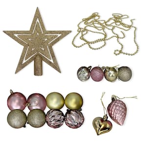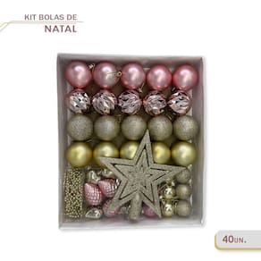 Kit Decoração de Árvore Completo - 40 itens Com 40 itens, este kit é perfeito para quem busca uma decoração de Natal completa e sofisticada, contando com uma estrela para o topo, cordão de bolinhas dourado, corações dourados e pinhos na cor escolhida, mini bolas douradas e na cor escolhida, além de corações nas cores dourado, rosa ou vermelho. Confira as principais características técnicas do Kit Decoração de Árvore Completo: Composição: Polipropileno Cores disponíveis: Dourado e Rosa ou Dourado e Vermelho Contém: 01 - Estrela para o topo 20cm 01 - Cordão de bolinhas dourado 400cm 03 - Corações dourados 4cm 03 - Pinhos na cor escolhida 6cm 09 - Mini bolas douradas 4cm 03 - Mini bolas na cor escolhida 4cm 10 - Corações dourados 6cm 10 - Corações na cor escolhida 6cm Com o Kit Decoração de Árvore Completo, você terá uma decoração de Natal ainda mais especial e cheia de brilho. Adquira agora mesmo o seu kit e deixe a sua árvore de Natal ainda mais encantadora. Não perca tempo, escolha a cor que mais combina com a sua decoração e garanta um Natal inesquecível! Marca: Wincy - Natal Marca: Wincy - Natal