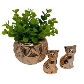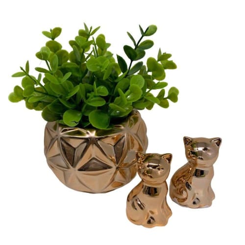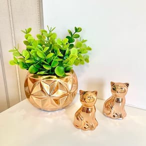 Kit decorativo vaso geométrico e gato rose gold, super moderninho para sua decoração ficar perfeita. Idealize ideias para criar e compor um espaço suave e ameno com esse lindo kit e tornar o seu lar ainda mais charmoso.