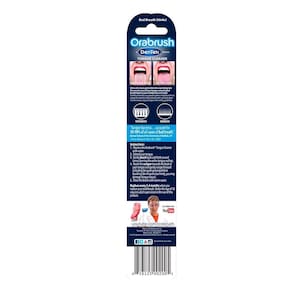 Escova e limpador de língua Dentek Orabrush remove bactérias e resíduos gerados pela escovação. Possui cerdas individuais e ultra macias com alcance profundo nas áreas irregulares da sua língua removendo as bactérias, fonte do mau hálito.