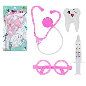 Kit Dentista Girls Com 4 Peças Brinquedo Estetoscópio, óculos, dente e seringa Infantil Art Brink - PANAMI