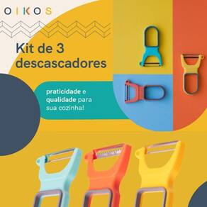 Kit Descascador De Legumes Frutas Multiuso 3 Cortes Oikos