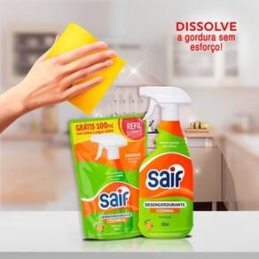 O Desengordurante Saif é o aliado indispensável para manter sua cozinha impecável com o mínimo de esforço. Sua fórmula avançada foi desenvolvida para dissolver as gorduras mais difíceis, óleos e sujeiras incrustadas em diversas superfícies. Este kit promocional traz a praticidade do frasco com gatilho spray, que garante uma aplicação direcionada e sem desperdício, junto com um refil de 500ml, oferecendo muito mais economia e garantindo que você nunca fique na mão durante a limpeza.