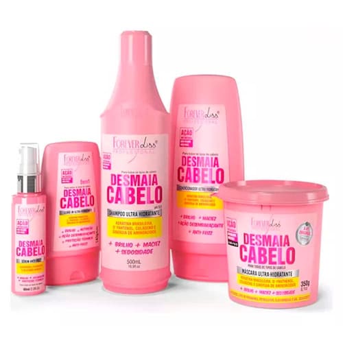 O Kit Desmaia Cabelo Completo Forever Liss proporciona um tratamento completo e eficaz para seus cabelos, combinando uma poderosa combinação de nutrientes que revigoram e melhoram completamente o aspecto das suas madeixas. Composto por 5 produtos de alta performance, o kit inicia com o Shampoo Desmaia Cabelo, que promove uma limpeza suave, auxiliando no tratamento de fios porosos.