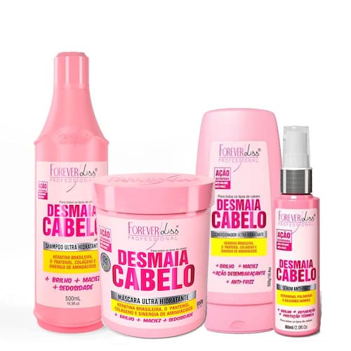 O Kit Desmaia Cabelo Completo Forever Liss traz todos os produtos da linha para um tratamento completo