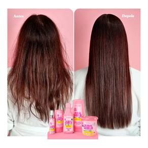 Sua fórmula contém poderosos ingredientes como Queratina brasileira, D’Pantenol, Colágeno