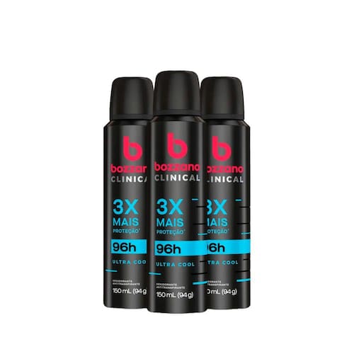 O Desodorante Aerosol Bozzano Clinical Ultra Coll garante 3 vezes mais proteção e até até 96 horas de duração, graças a sua tecnologia total controle. Conta com um fragrância moderna que oferece proteção com ação antitranspirante e desodorante para homens confiantes que não abrem mão da segurança e conforto no dia a dia. Testado dermatologicamente, o antitranspirante não possui álcool em sua fórmula.