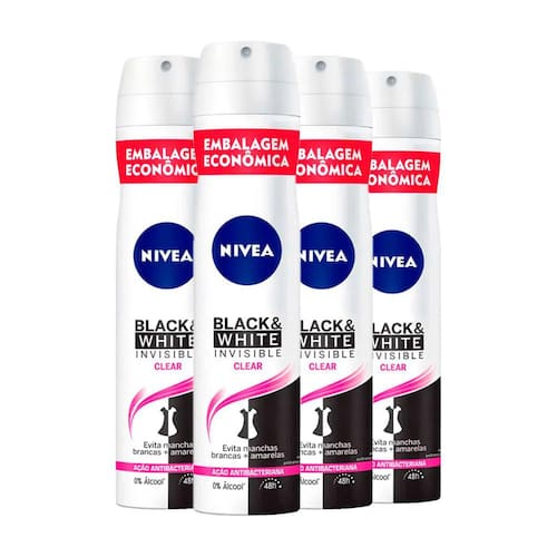 Kit Desodorante Aerosol Nívea Black & White Feminino 200ml - 4 unidades