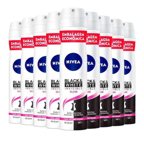O Desodorante Nívea Invisible Black & White Feminino foi criado para proporcionar uma proteção por 48horas, e uma agradável sensação de conforto por todo o dia. Enriquecido com agentes que deixam a pele hidratada e protegida, alem de evitar manchas amarelas nas roupas brancas e manchas brancas nas roupas pretas cuidado que toda mulher realmente merece. O Desodorante Nívea Invisible Black & White Feminino possui uma fórmula com dobro de agentes antitranspirantes e minerais que criam uma camada protetora evitando o suor e a proliferação de bactérias causadoras de mau odor.