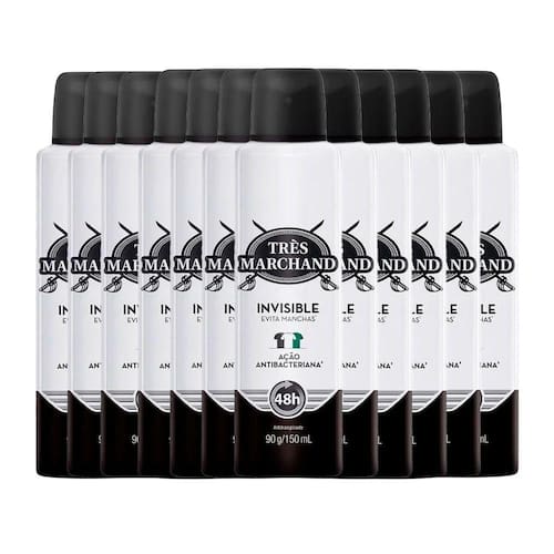 O Kit Desodorante Aerossol Très Marchand Invisible 150ml - 12 Unidades proporciona um toque de sensualidade, ideal para o dia e principalmente à noite. Sua Fórmula proporciona 48 horas de proteção, deixando uma sensação de segurança e bem estar durante o dia, Além de possuir Formula antitranspirante. Conta ainda com ação invisible anti-machas.