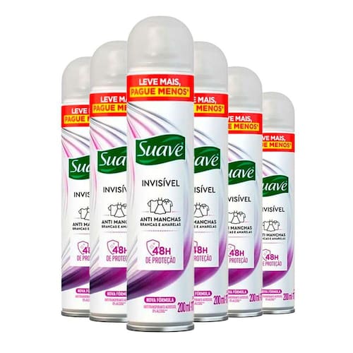 Suave Invisible possui ação anti-manchas brancas e amarelas. Proteção antitranspirante contra o mau odor causado por bactérias por 48 horas e sensação de banho fresco.