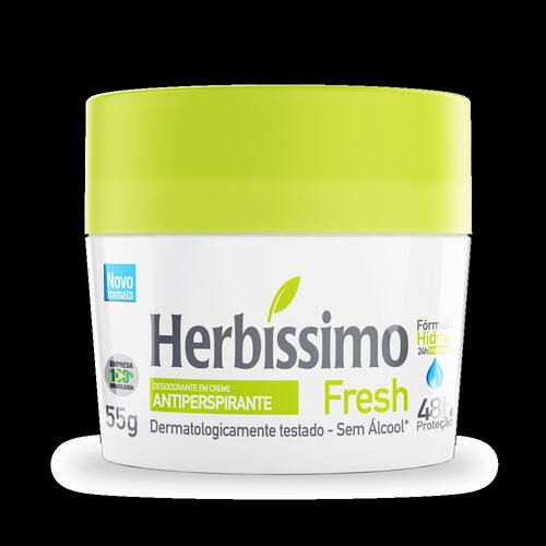 Combate o Odor O Creme Desodorante Antiperspirante Fresh possui fórmula especialmente desenvolvida com glicerina vegetal e óleo de girassol, que promovem a hidratação das axilas por até 24 horas. Evita o ressecamento da pele e ajuda a mantê-la macia e hidratada. Minimiza possíveis irritações na pele. 48 horas de proteção contra a transpiração e o odor. Dermatologicamente testado, não contém álcool etílico e nem corantes. Conteúdo: 55g.