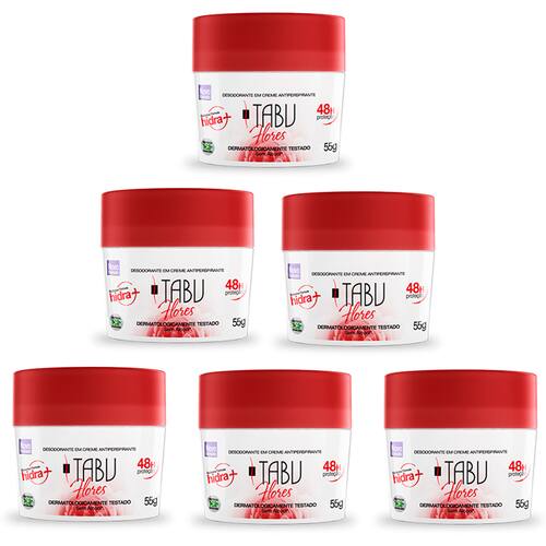 Aprovado Dermatologicamente O Creme Desodorante Antiperspirante Tabu Flores possui uma fórmula especialmente desenvolvida com glicerina vegetal e óleo de girassol, que promovem a hidratação das axilas por até 24 horas. Evita o ressecamento da pele e ajuda a mantê-la macia e hidratada. Minimiza possíveis irritações na pele. 48 horas de proteção contra a transpiração e o odor. Dermatologicamente testado, não contém álcool etílico e nem corantes. Conteúdo: 55g.