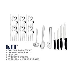 Kit dia das mães 31 peças tramontina talheres facas cozinha Complete sua mesa e sua cozinha com este prático e elegante conjunto o faqueiro búzios 24 peças oferece o essencial para servir suas refeições com estilo e funcionalidade. Acompanha também 4 facas da linha plenus e utensílios ideais para o dia a dia: