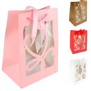 - Sacola de Papel 25x18cm com Visor Coração e Laço diversos