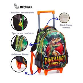 O Kit Escola Dinossauro é perfeito para acompanhar as crianças em suas atividades escolares. Composto por uma Mochila com Rodas, uma Lancheira Térmica e um Estojo, esse conjunto é ideal para transportar os materiais de forma prática e organizada.