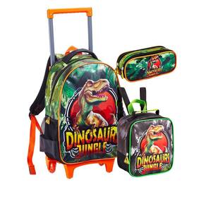 Kit Escola Dinossauro - Mochila com Rodas, Lancheira e Estojo
