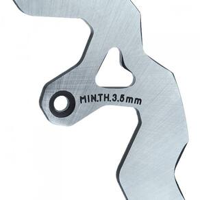 Fabricado em aço inoxidável de alta resistência, com sistema de tratamento contra oxidação e acabamento de retífica para frenagem perfeita nas mais diversas condições de uso.