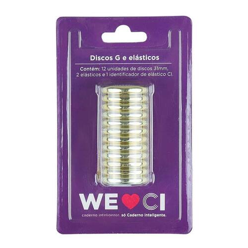 Kit Discos G e Elásticos para Caderno Inteligente GCI312008 Dourado - CI