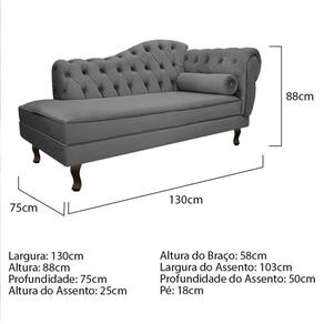 Especificações Técnicas do Kit Recamier Diana 130cm Lado Esquerdo e 02 Poltronas Julia: