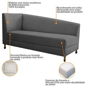 Kit Diva 160Cm Lado Direito E 02 Poltronas Luiza Linho - Doce Sonho Móveis Cinza Escuro