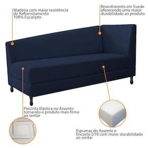 Kit Diva Recamier Heitor 160cm Lado Esquerdo E 02 Poltronas Luiza Suede - Doce Sonho Móveis Cor Azul Marinho