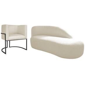 Kit Divã Luna 160cm Lado Direito E 01 Poltrona Base De Ferro Preto Linho Cor Bege