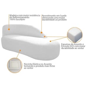 Kit Divã Luna 160cm Lado Direito E 02 Poltronas Base De Ferro Dourado Suede Cor Branco