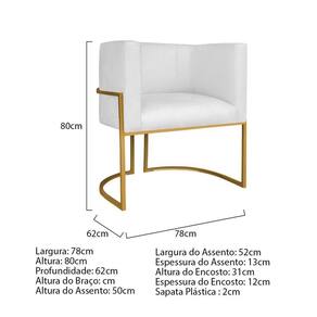 Kit Divã Luna 160cm Lado Direito E 02 Poltronas Base De Ferro Dourado Suede Branco