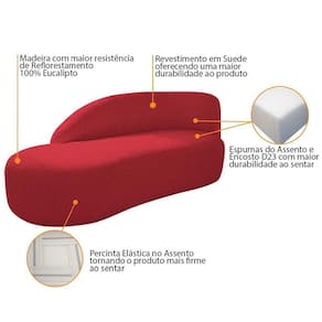 Kit Divã Luna 160cm Lado Esquerdo E 02 Poltronas Base De Ferro Dourado Suede Vermelho - Amarelo